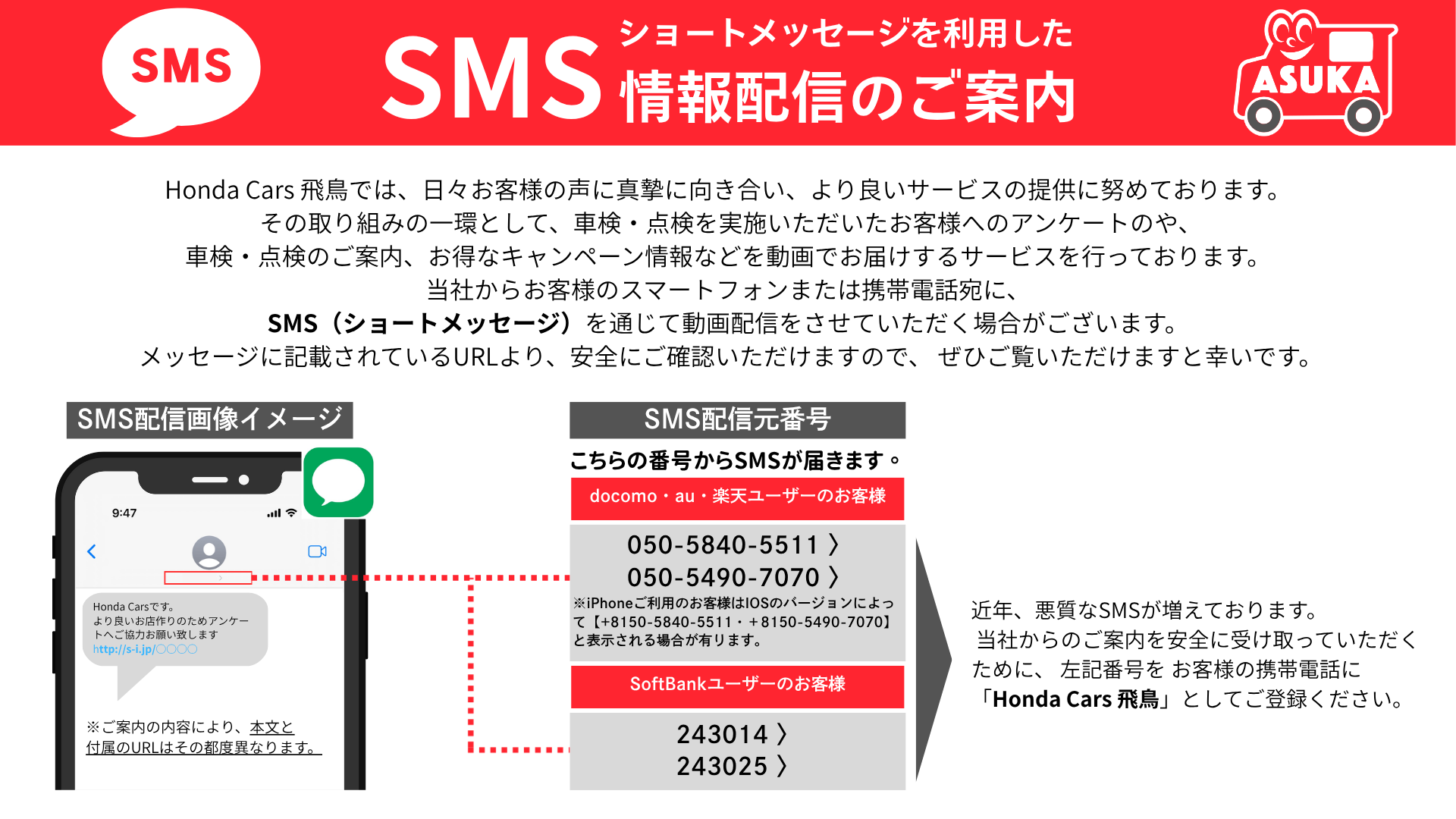 下記番号よりSMSが届きましたら、ご案内動画を是非ご覧ください(#^^#)