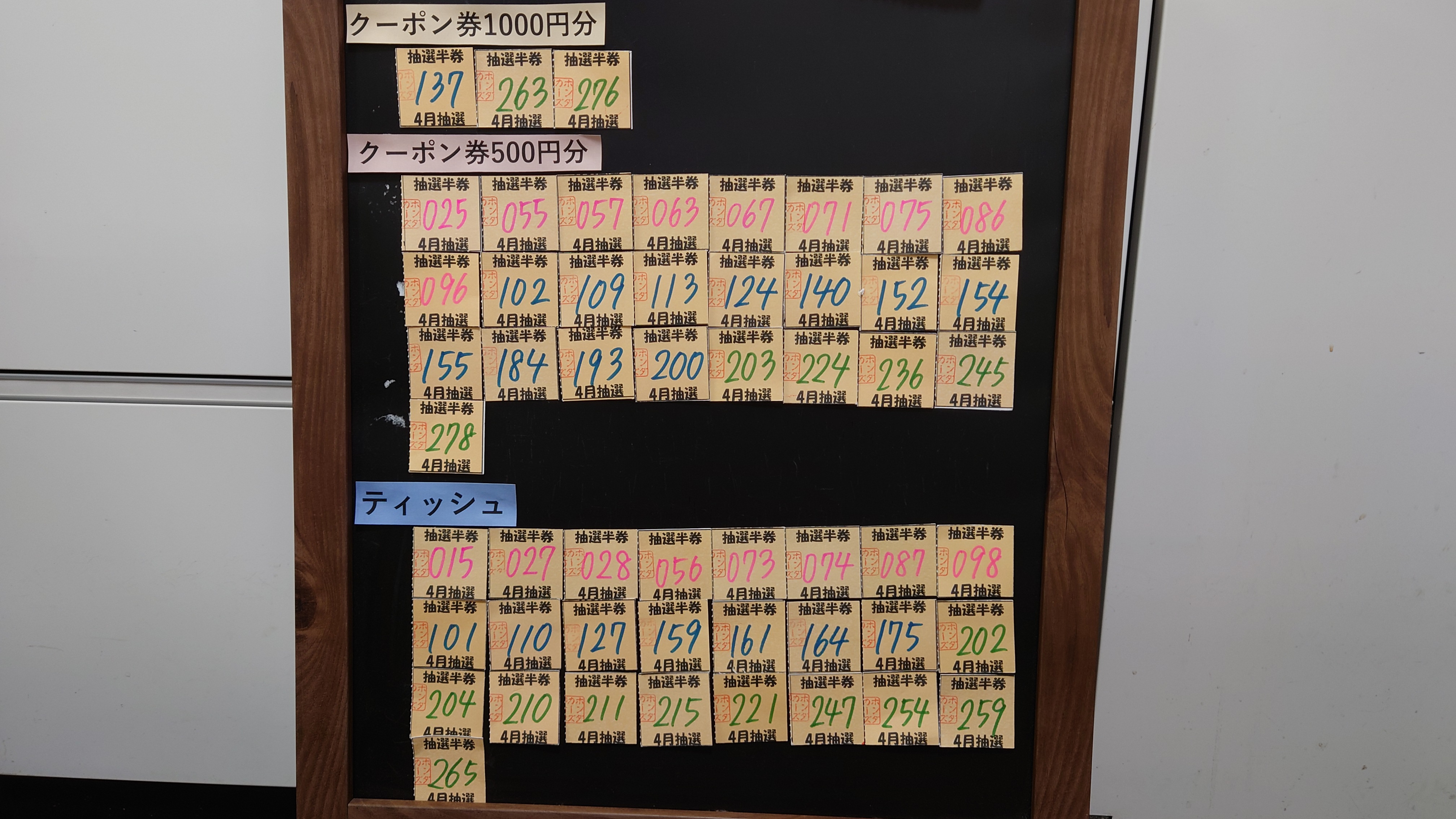 3/1~3/31までの抽選会の当選番号のお知らせ