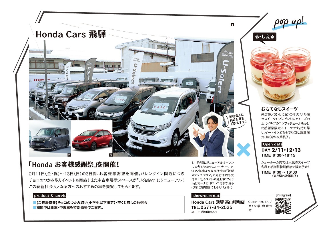 ところで、BLESSにホンダカーズ飛騨の中古車展示場のU-Serectコーナーリニューアルの記事と