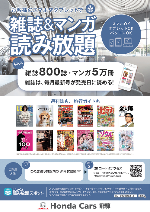 お客様の普段お使いのスマホやタブレットにて雑誌やマンガが読み放題になるサービスです!