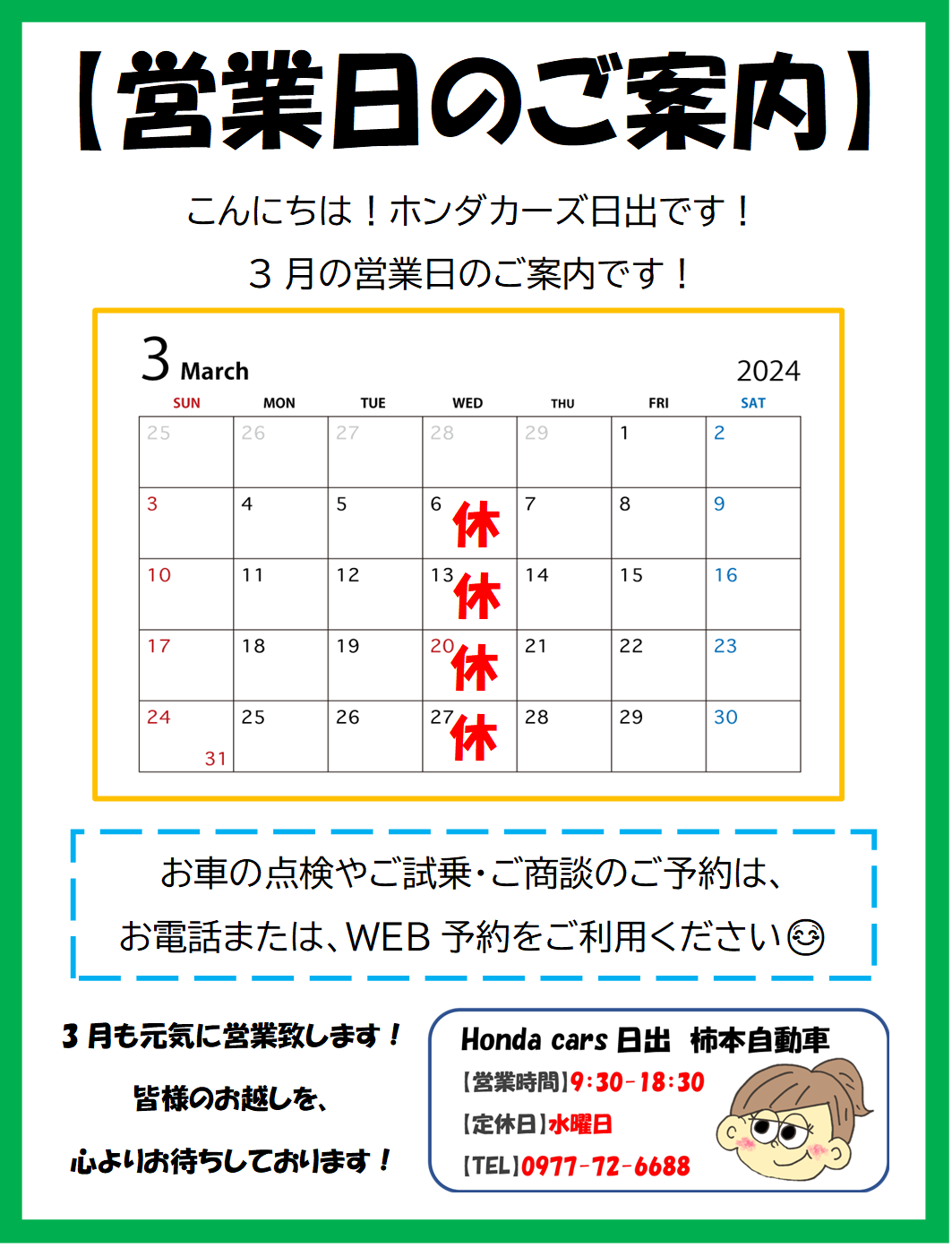 ー3月の営業日のご案内ー