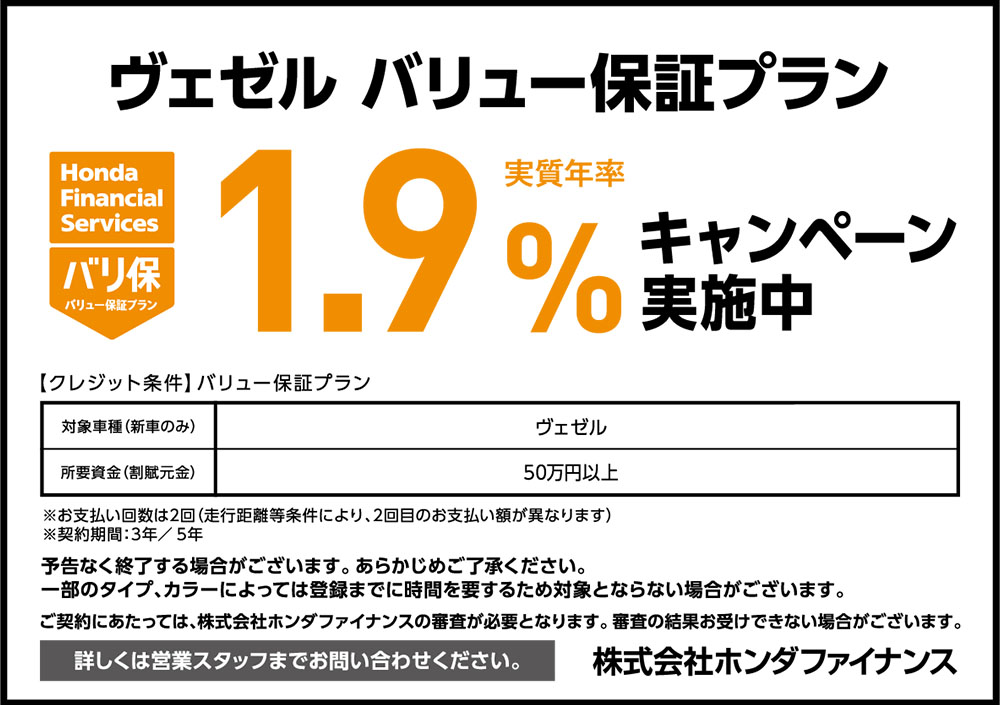 ヴェゼル バリュー保証プラン 低金利キャンペーン実施中!