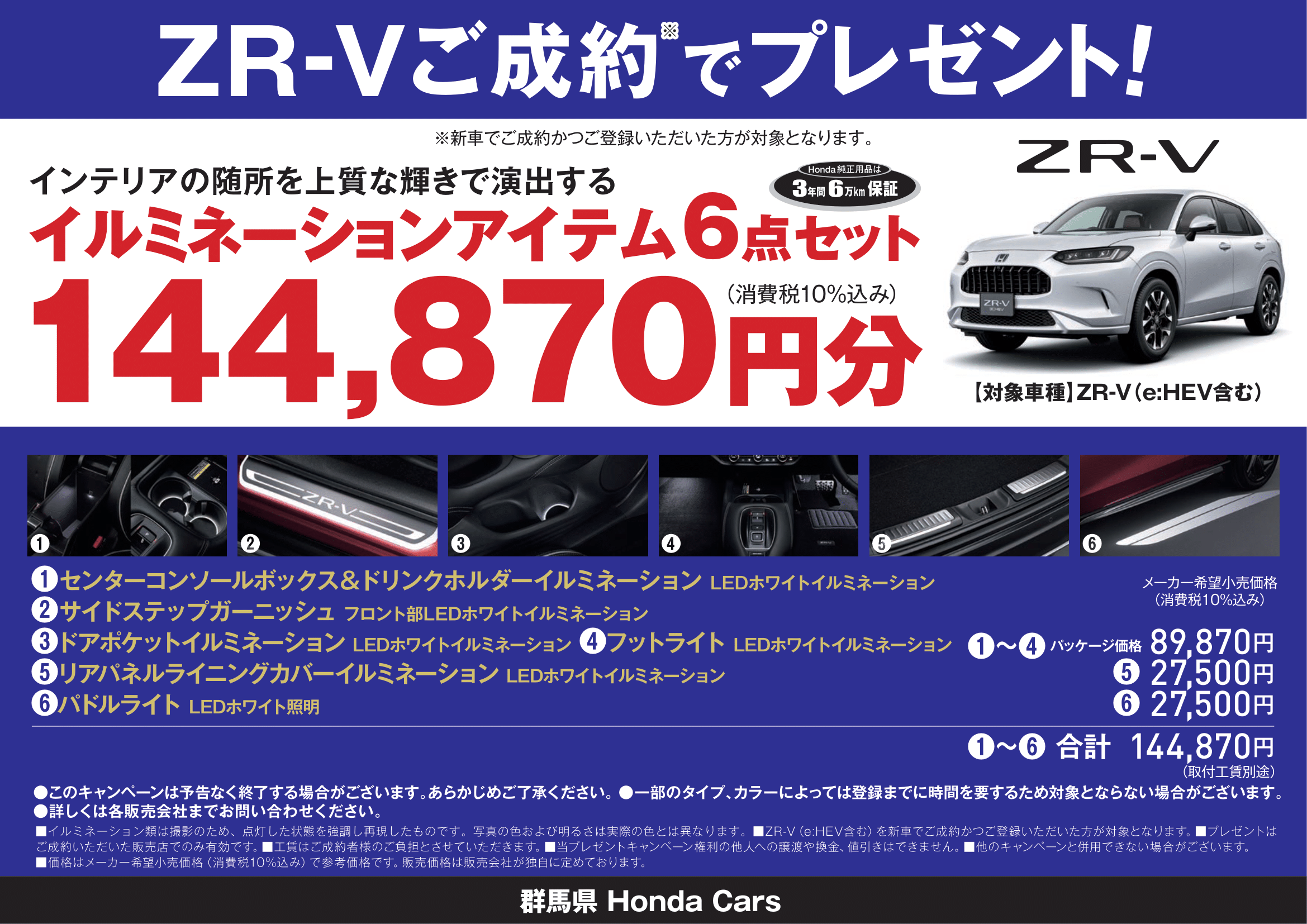 【ご成約キャンペーン】ZR-V イルミネーションアイテム6点セットプレゼント