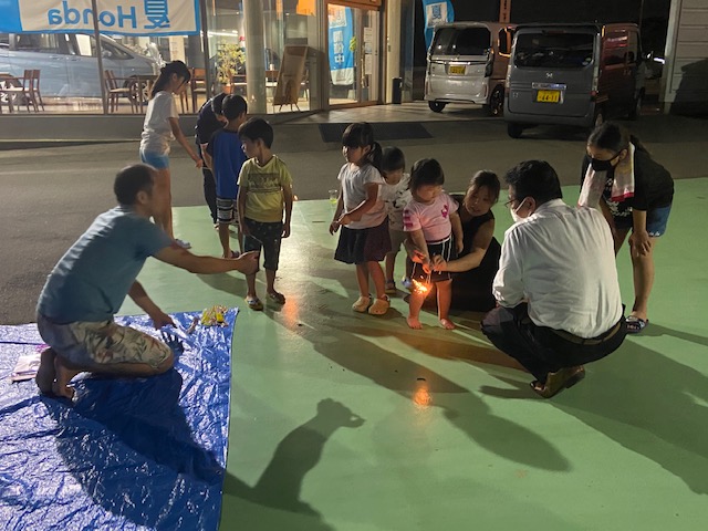 想定以上にお子様の参加が多く、急遽花火を購入しに走りました。コロナでイベントが少ない中、良い思い出になると嬉しいですね。