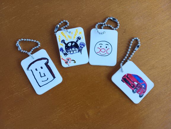 自由にお好きな絵をかいてキーホルダーを作ってみてください。