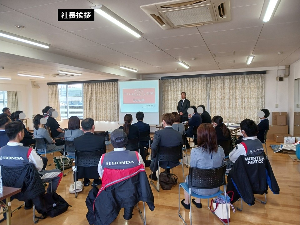 4月14日(火)に2026年度の全社員大会を西インター店ショールーム2階にて、ほぼ丸1日かけて開催しました。