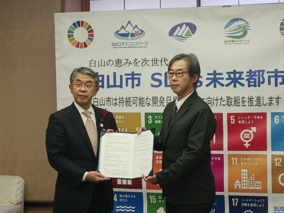協定の締結式は白山市役所で開かれ、田村敏和市長と平田隆文代表取締役社長が協定書に署名しました。