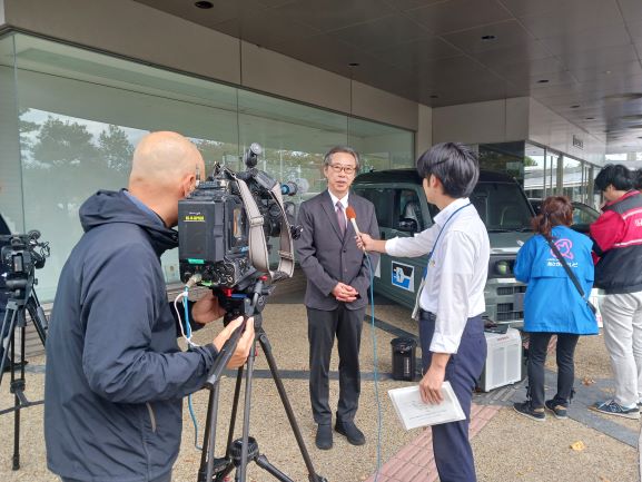 当社では”災害時に避難所等で電気自動車から電気を供給できれば携帯電話や災害ラジオなどの充電ができ、災害時の情報収集や情報共有が容易になります。これからも地域貢献を果たしていきたい”と考えております。