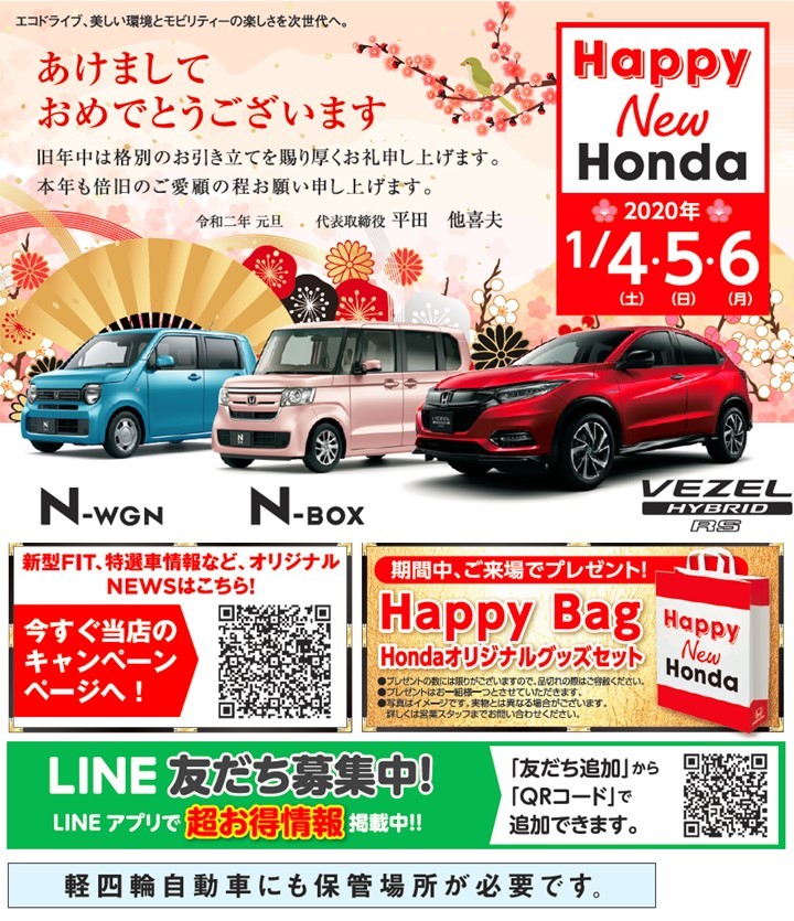皆様、新年明けましておめでとうございます。本年もHonda Cars 石川西をご愛顧いただきますようお願い申し上げます。