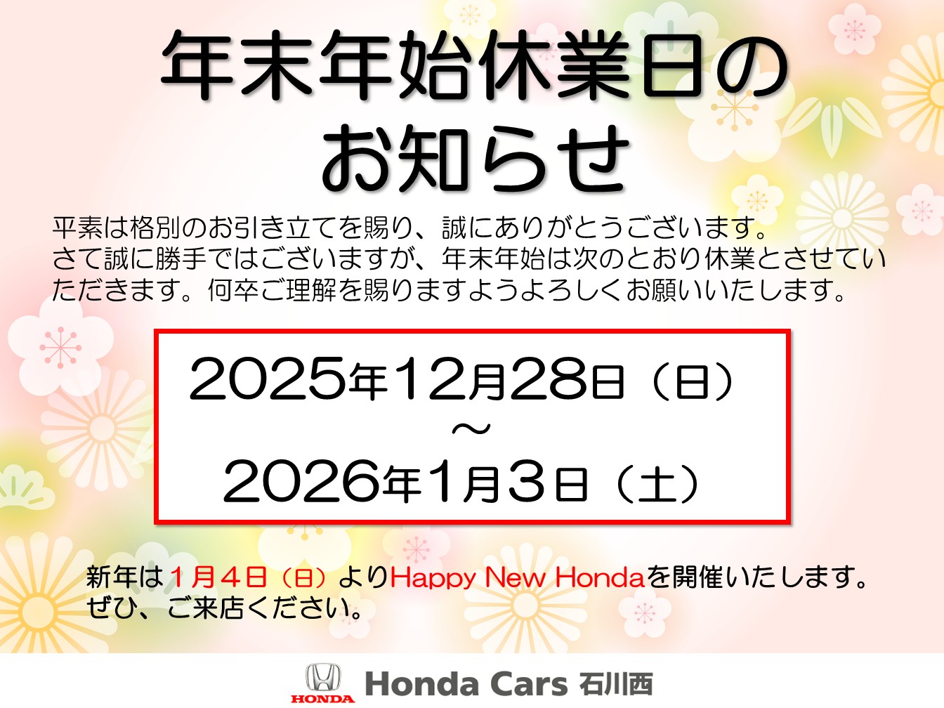 いつもHonda Cars 石川西をご利用いただき、ありがとうございます。