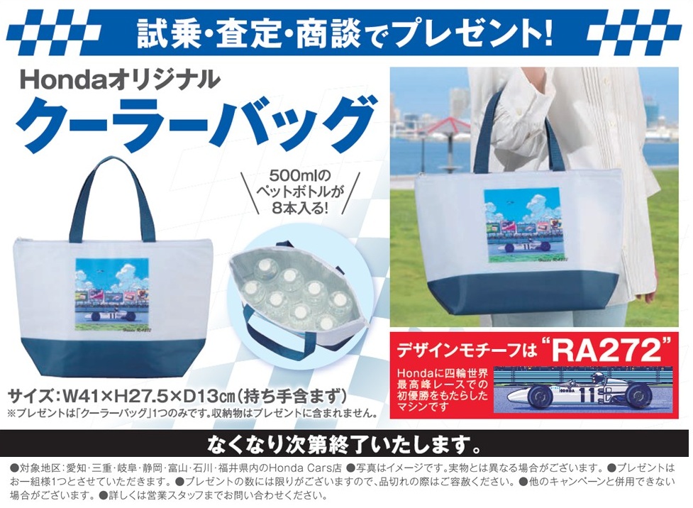 試乗・査定・商談で「Hondaオリジナル クーラーバッグ」プレゼント!