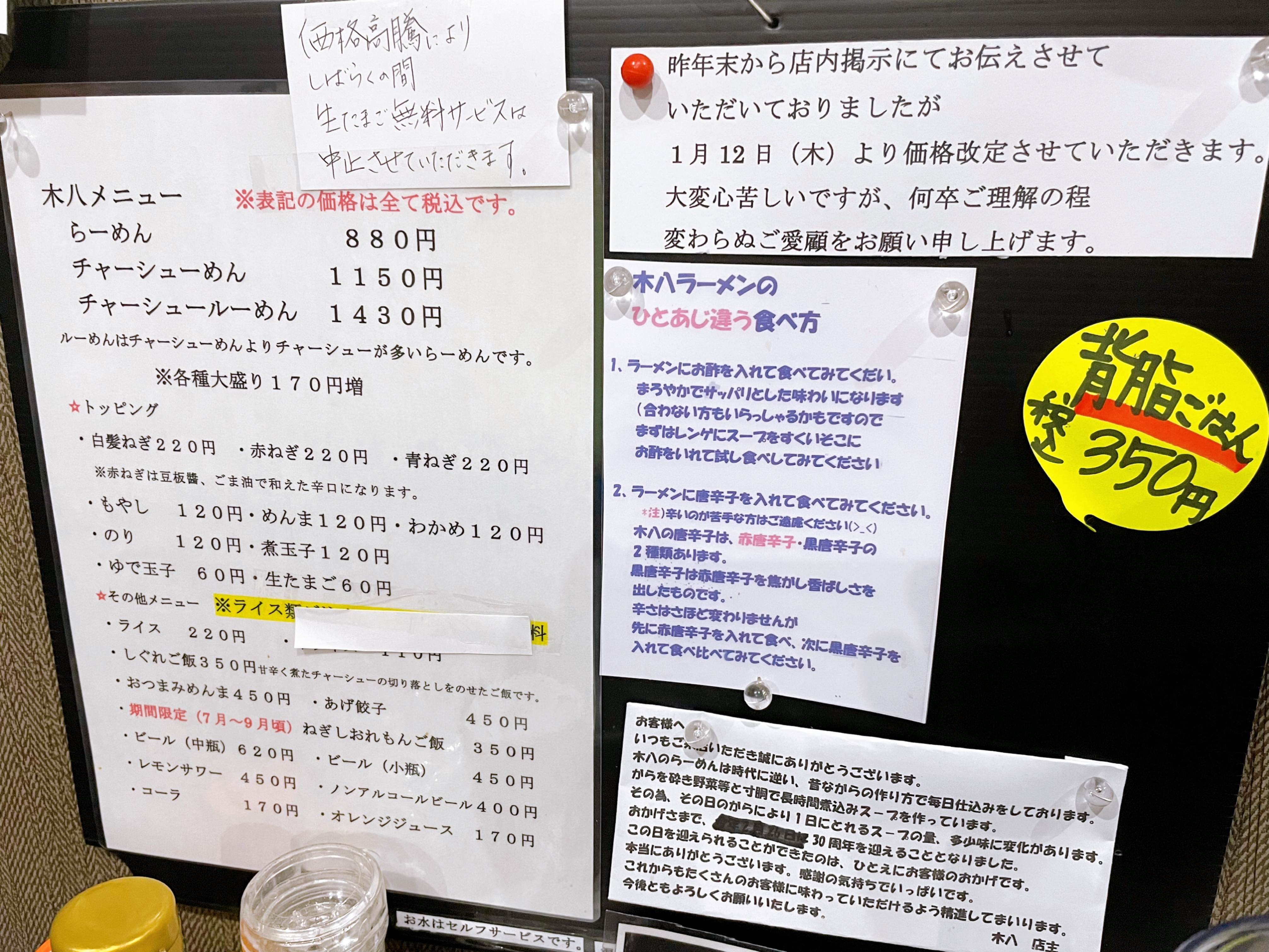 子供のころラーメンと言えば木八だったので、いつも来ると子供のころを思い出して懐かしい気持ちになります。