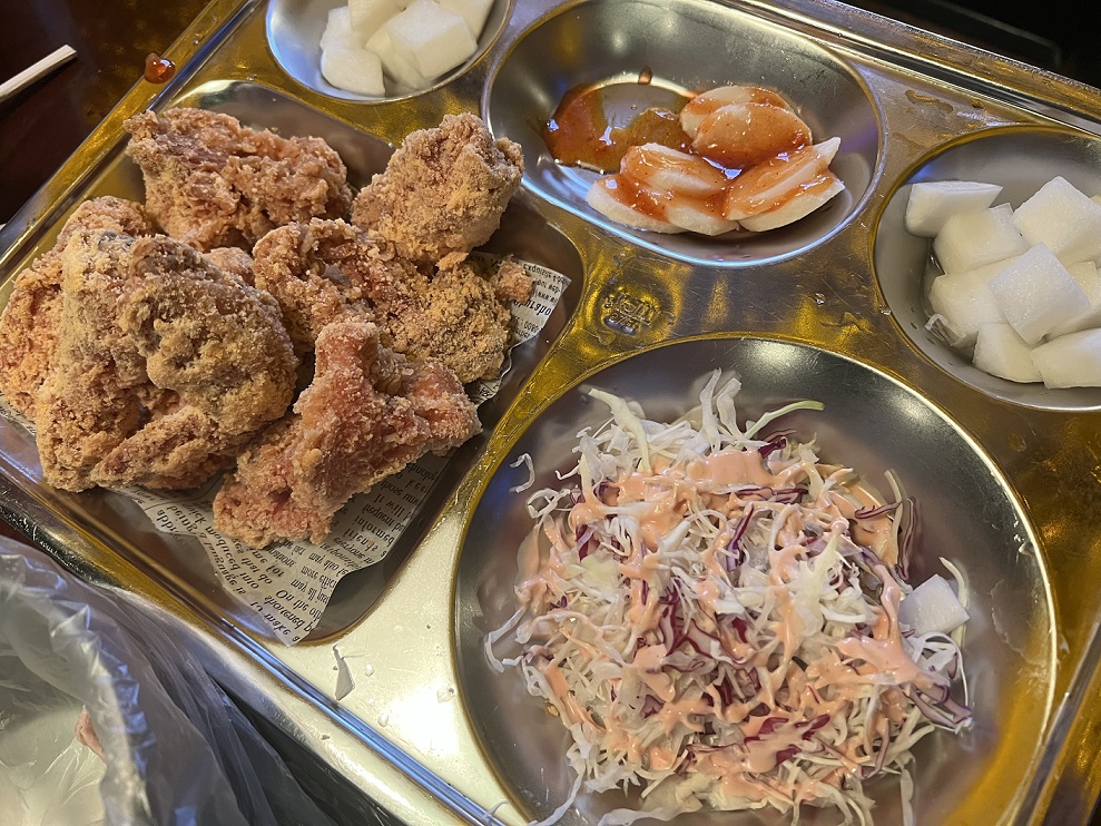 チキンに付いてくるチキンム(大根の甘酸っぱい漬物)が大好きです。