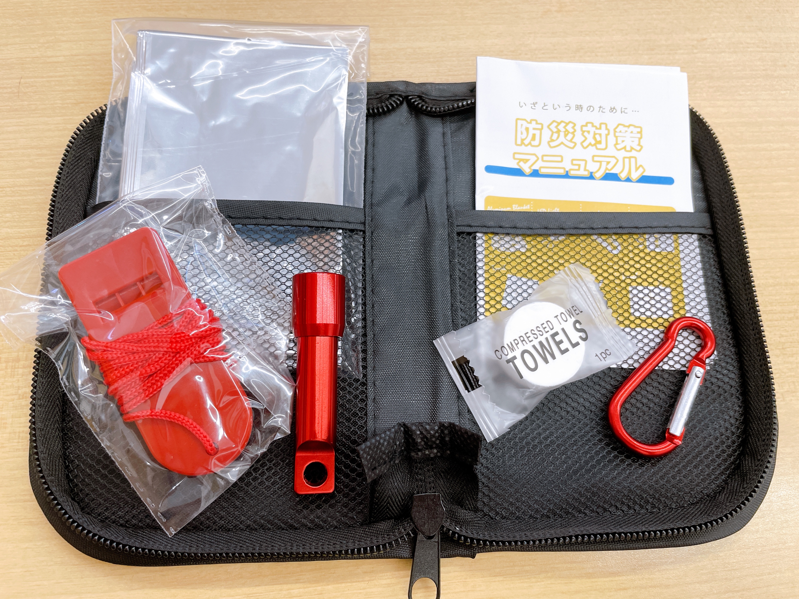 ・カラビナ ・圧縮タオル ・対策マニュアル