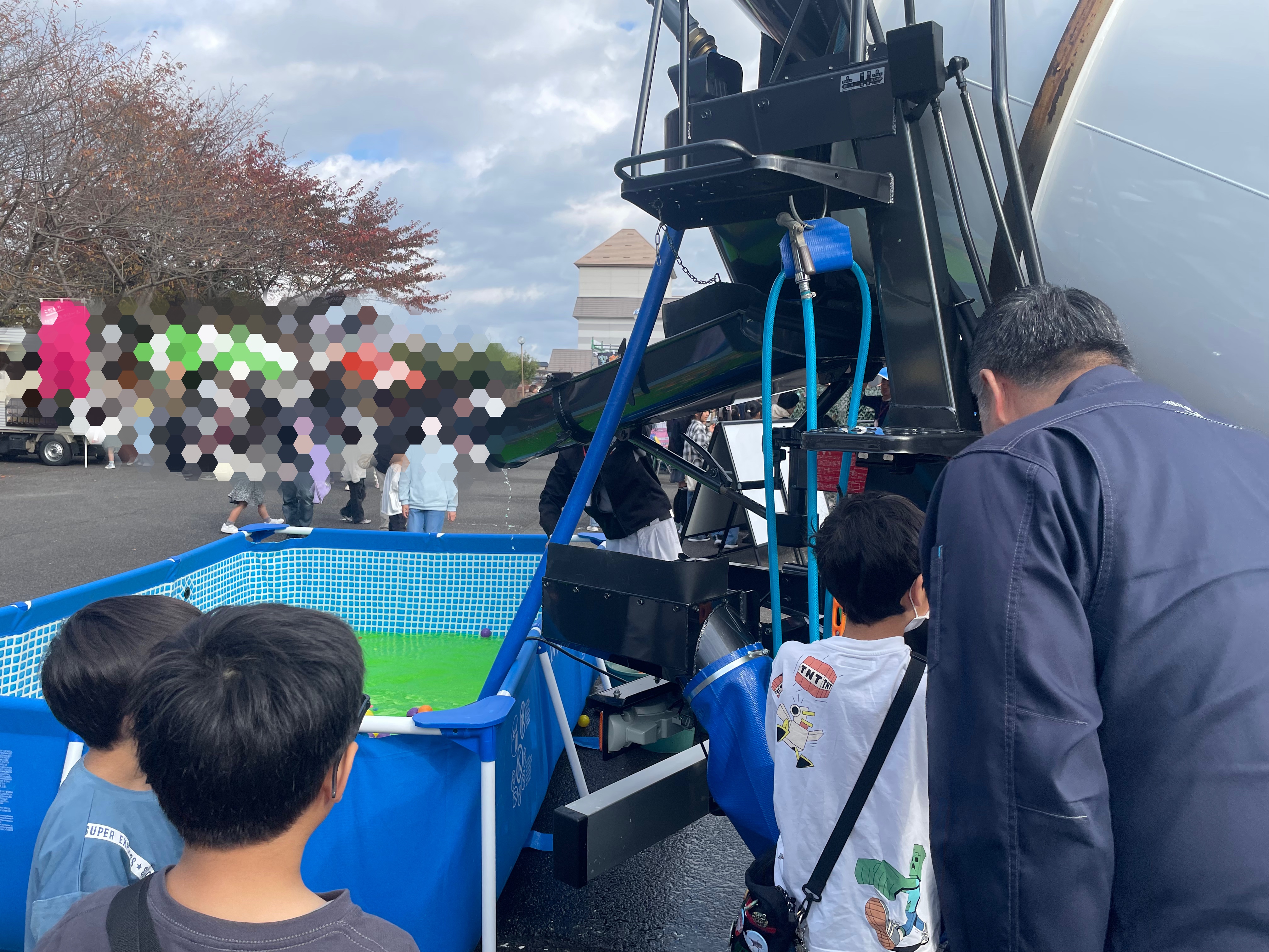 ミキサー車の操作体験をさせてもらって、子供たちは大喜びでした☆