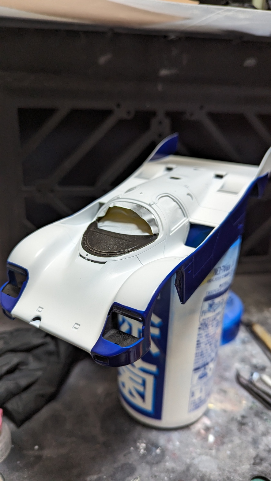 まず全体を白色に塗ってから〜マスキングからの〜青色。