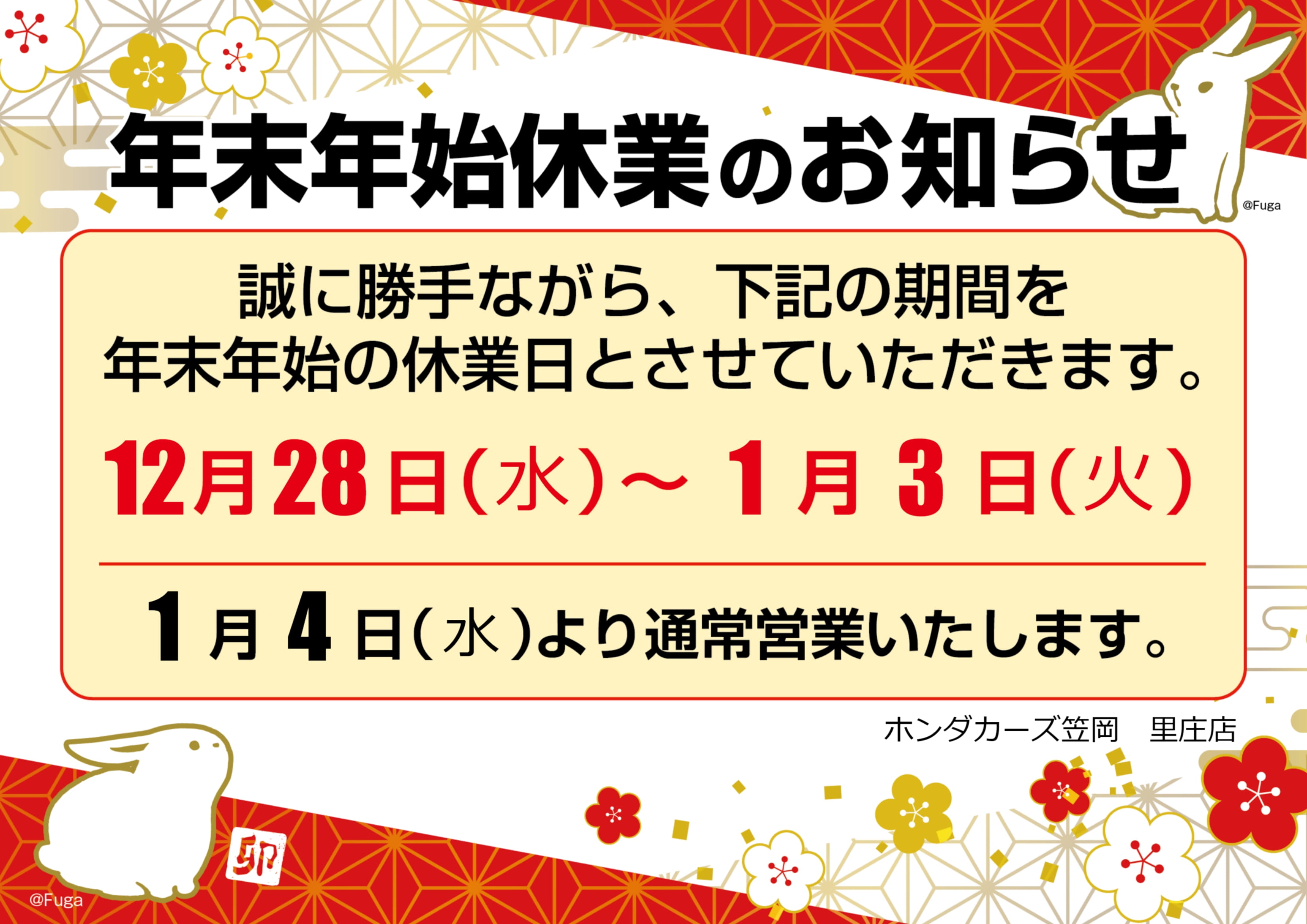年末年始のご案内