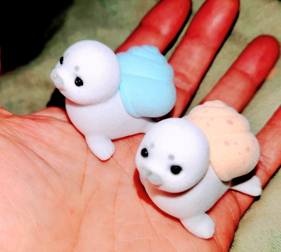 見ての通りあざらしの背中にカタツムリの殻が乗ってます。