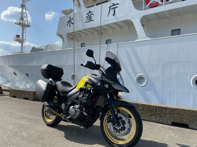 いつ見ても恰好良いなあと思いながら近くでは写真を撮れないので、代わりに水産庁さんの船をバックにパチリ