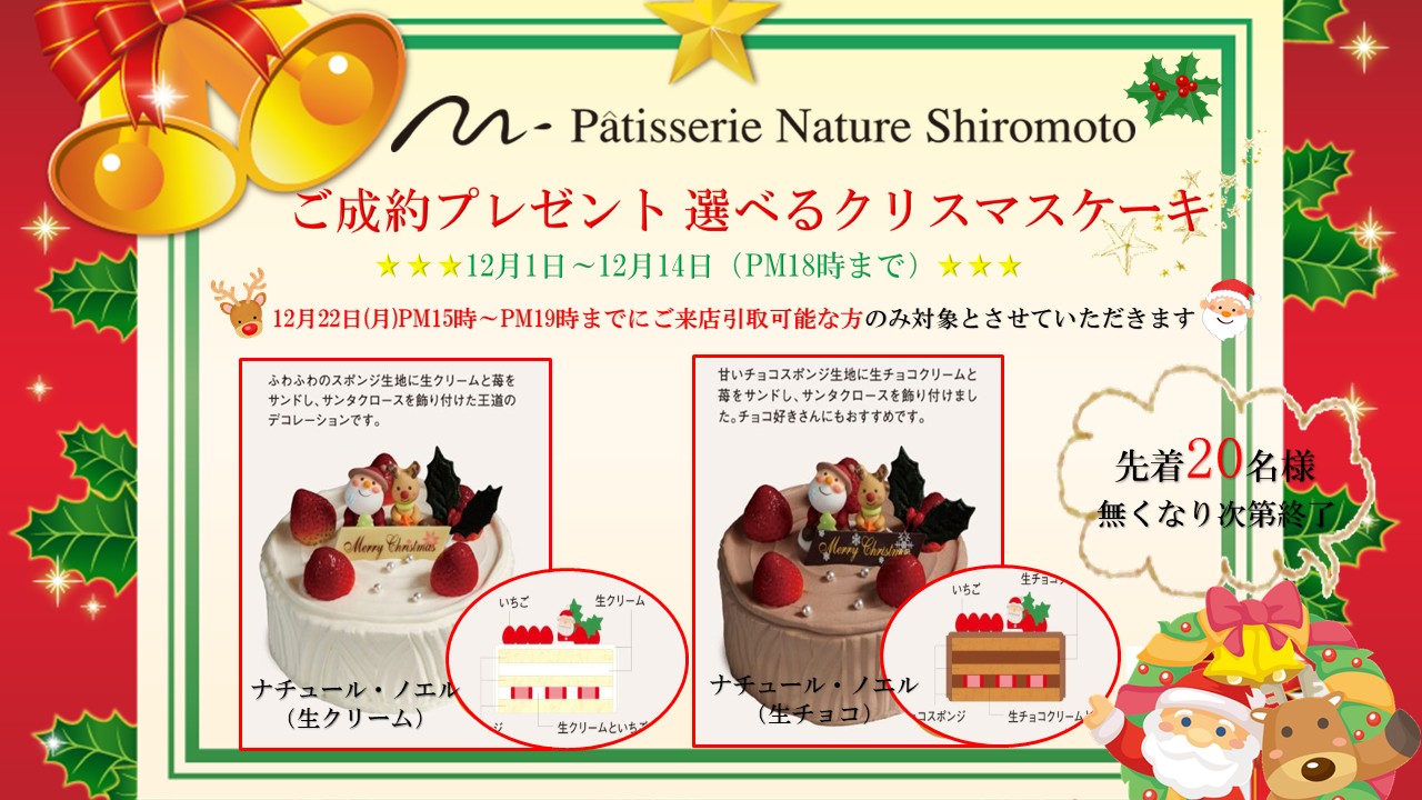 12月1日(月)~14日(日)までにご成約頂いたお客様、先着20組の方にパティスリー・ナチュール・シロモトさんの