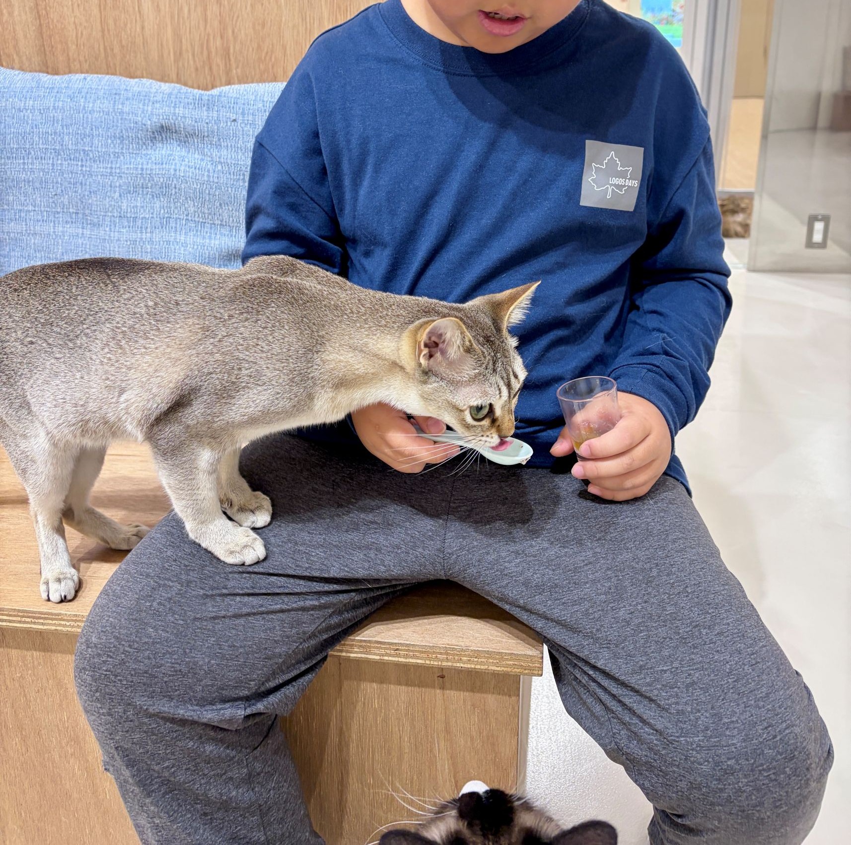 課金(おやつ購入)して猫ちゃんの気を引こうとする次男。