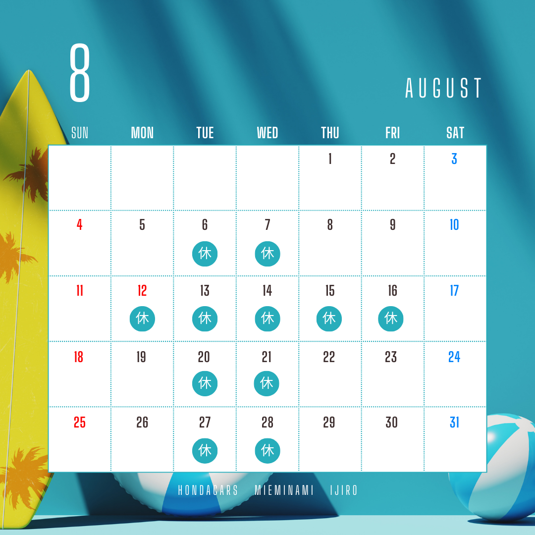 8/12(月)~8/16(金)の間、夏季休業とさせていただきます。