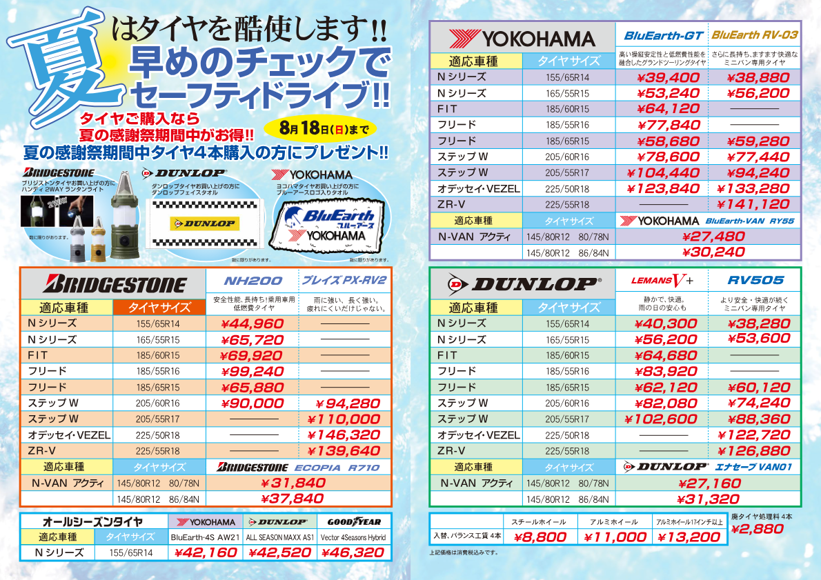 タイヤもお値打ち品をご用意させて頂いております。