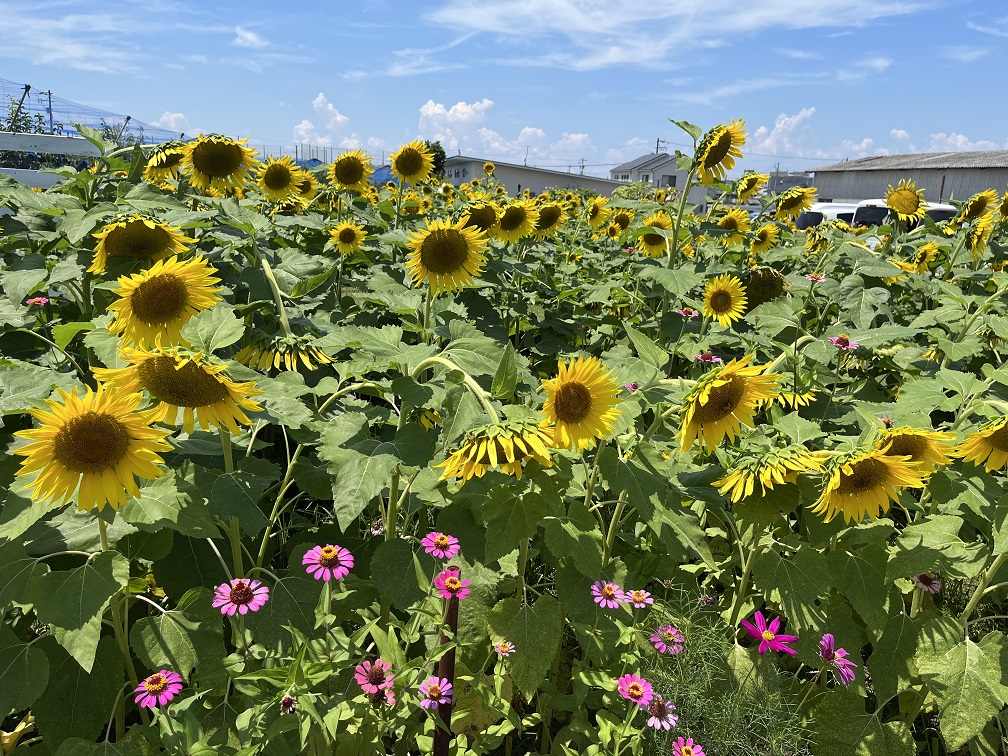 つい先日、各務原近辺走行中に道路沿いにとても綺麗なひまわり畑がありました♪