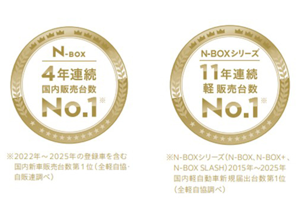 Hondaの軽自動車「N-BOX(エヌボックス)」の2025年暦年(1~12月)における販売台数が201,354台となり、登録車を含む新車販売台数において第1位を獲得しました。暦年の新車販売台数において4年連続、軽四輪車 新車販売台数においては11年連続の首位獲得となります。