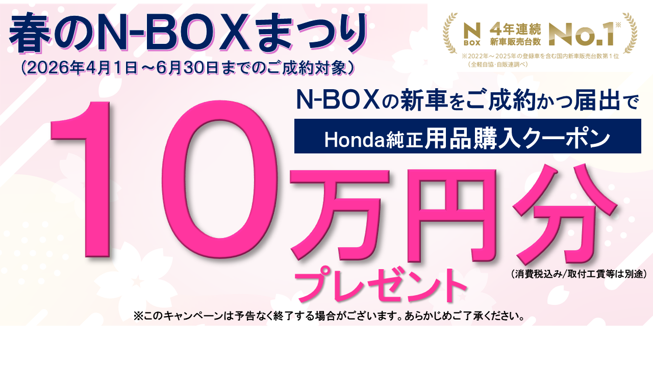 春のN-BOX用品クーポン10万円プレゼントキャンペーン