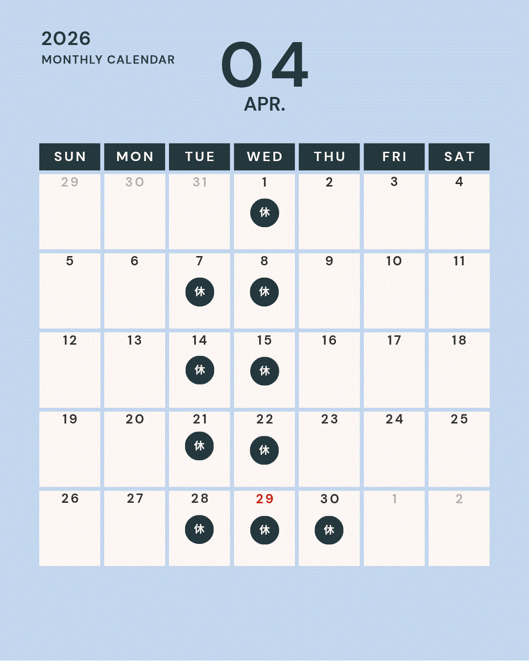 4月~5月 店休日のお知らせです。