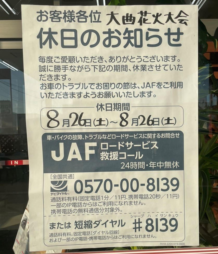 大曲の花火にご来場の際は、事故のないよう安全運転でお越しくださいね!!