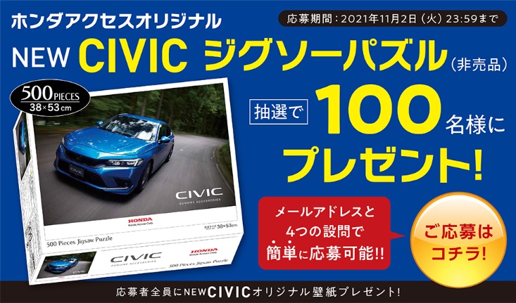そんな素敵なCIVICのジグソーパズルが抽選で100名様にプレゼント!!!!!