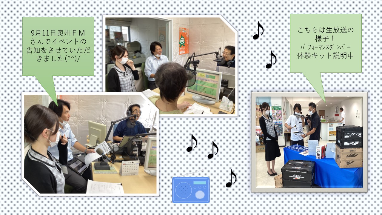 奥州FMさんにもご協力いただき営業山田、業務菊地でラジオ生出演