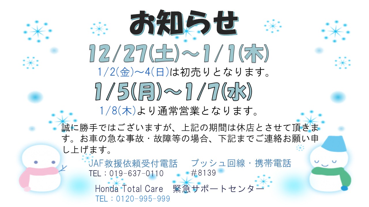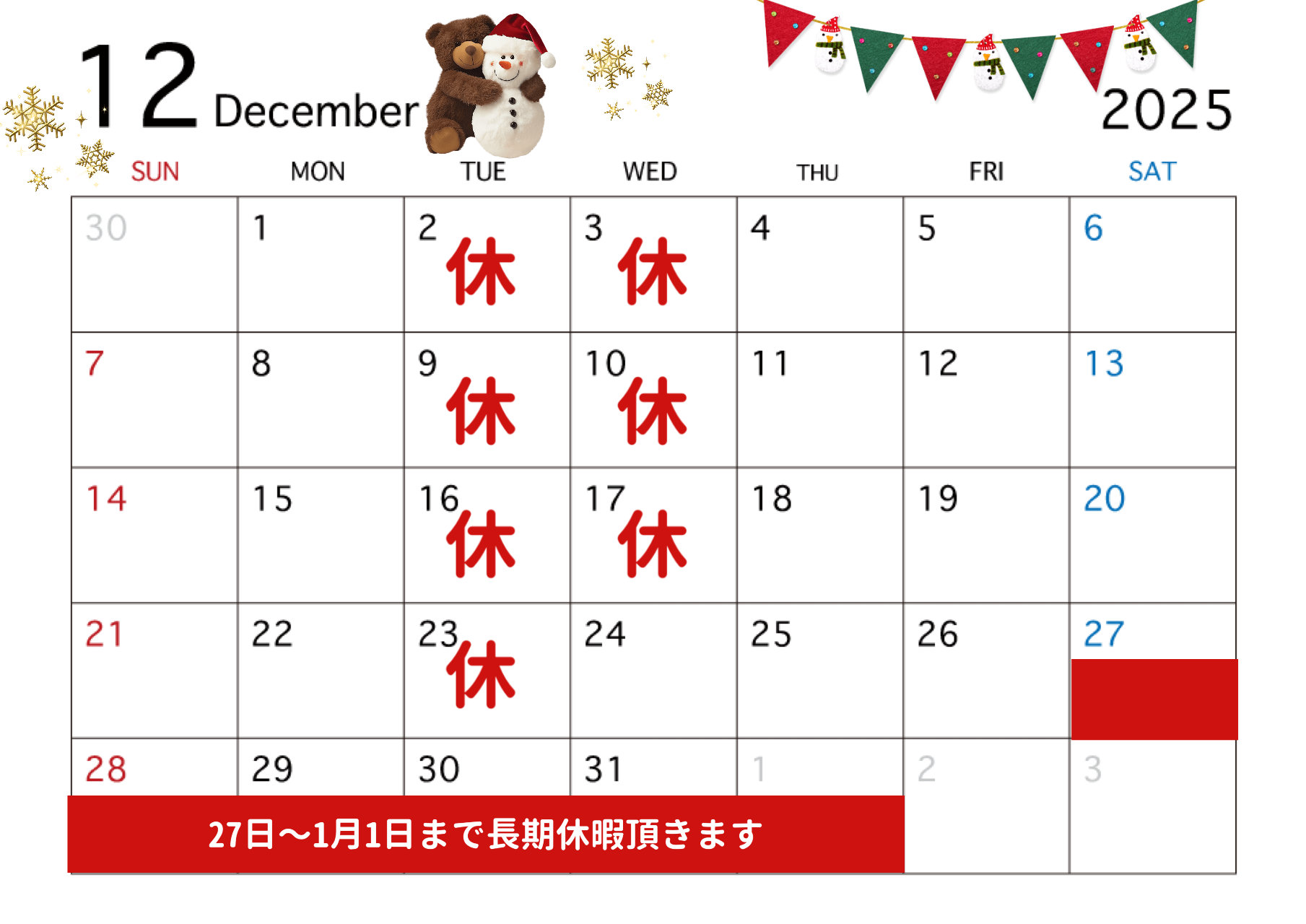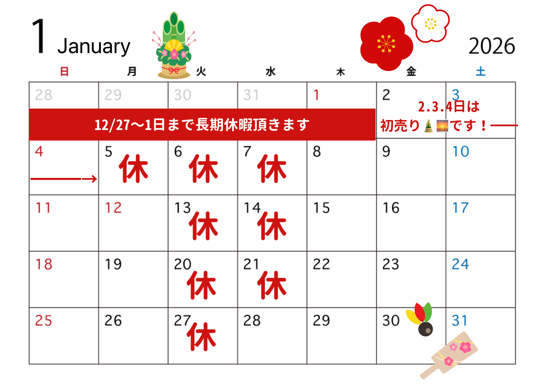 ーーー12月、1月の営業日と年末年始のお知らせですーーー