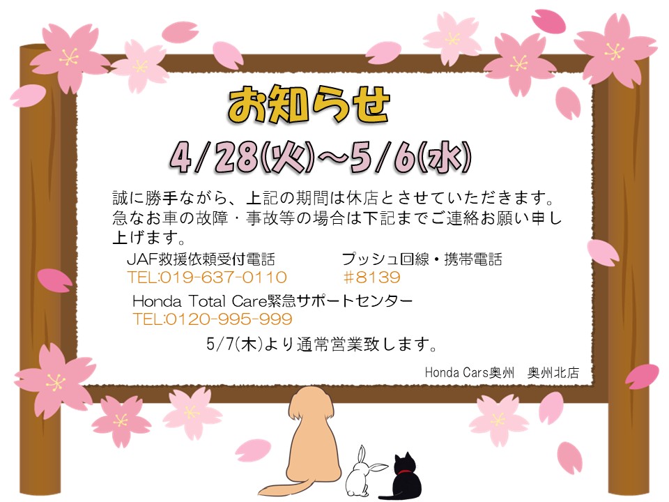 また、ゴールデンウィーク休業になりますが