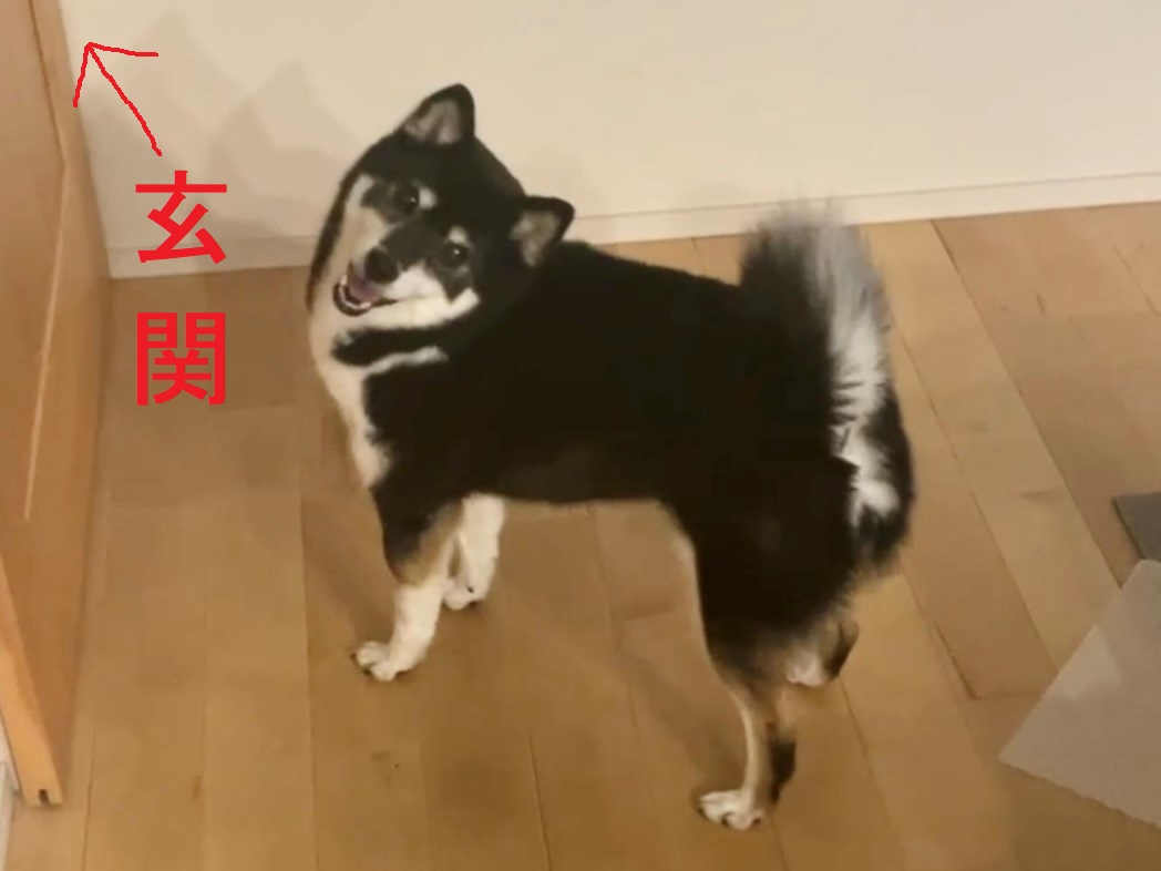 お散歩大好き犬、出かける前は楽しそうな顔で玄関まで誘導してきます。