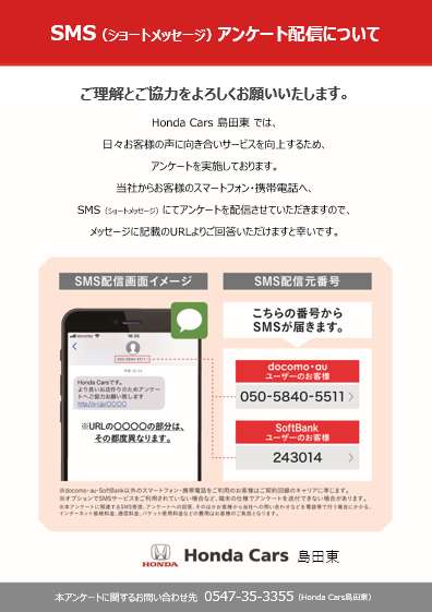 HondaCars島田東では、サービス向上のためアンケートを実施しております!!!