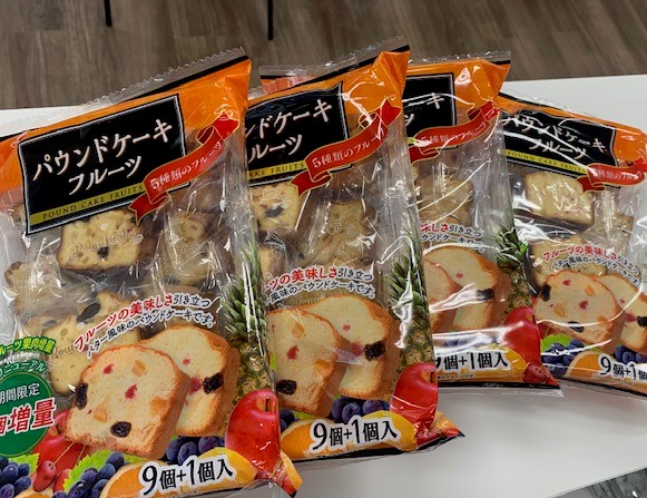 このパウンドケーキ初めて食べたんですがフルーツがたくさん入っていてとっても美味しかったです![]()