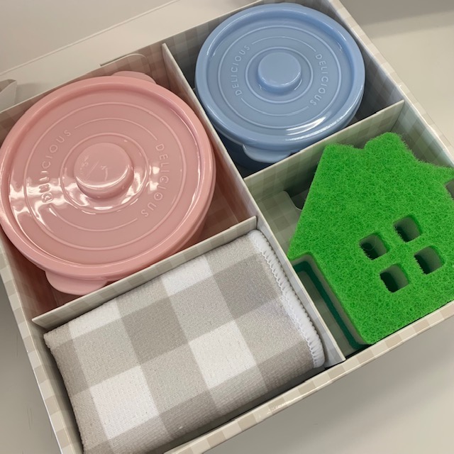 中には保存容器(大・中)2個とスポンジ、クロスが入っています