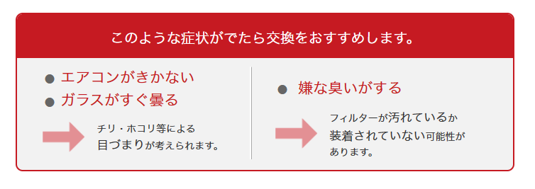 他にも風量が弱くなったり、嫌なにおいがしたりした場合は交換をオススメしています(*'ω'*)!