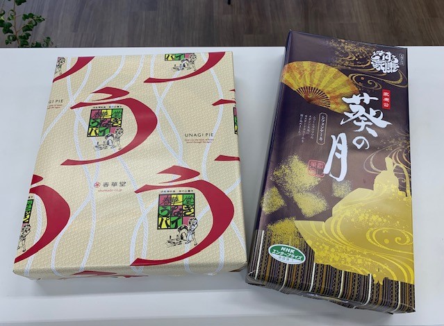 うなぎパイと葵の月というシフォンケーキいただきました(๑ơ ₃ ơ)♥