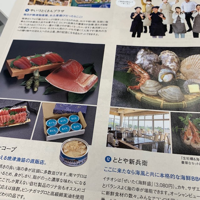 海のまちならではのグルメのお店や、有名な魚河岸シャツのお店も載っていました!