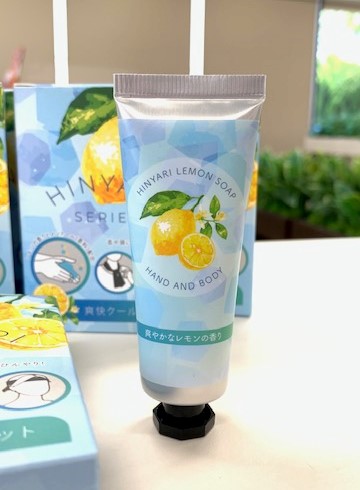 ハンドクリームに見える右の写真はレモンの香りがするハンドソープが入っています!