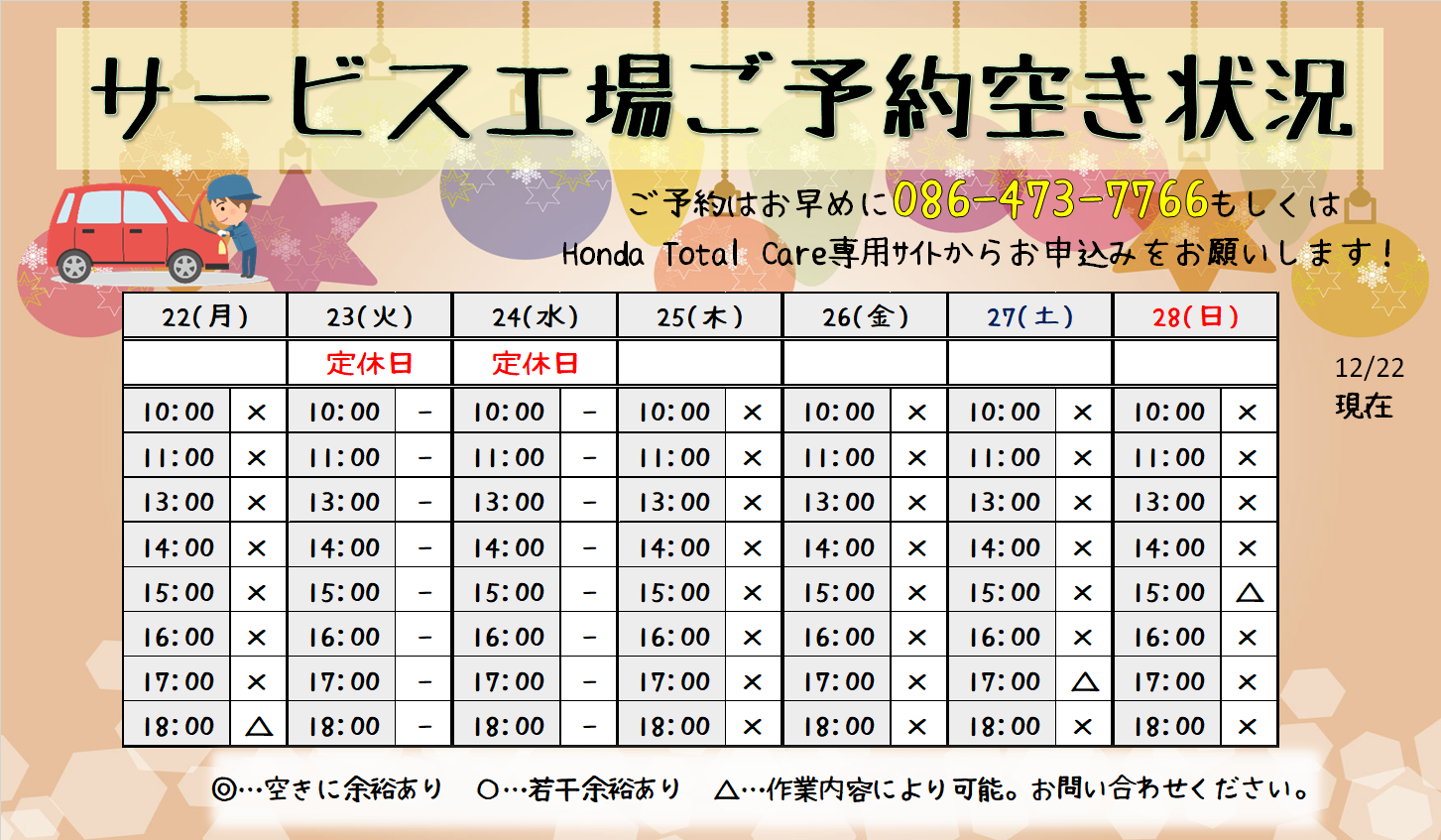 今週のサービスご予約状況お知らせです(`・ω・´)ゞ