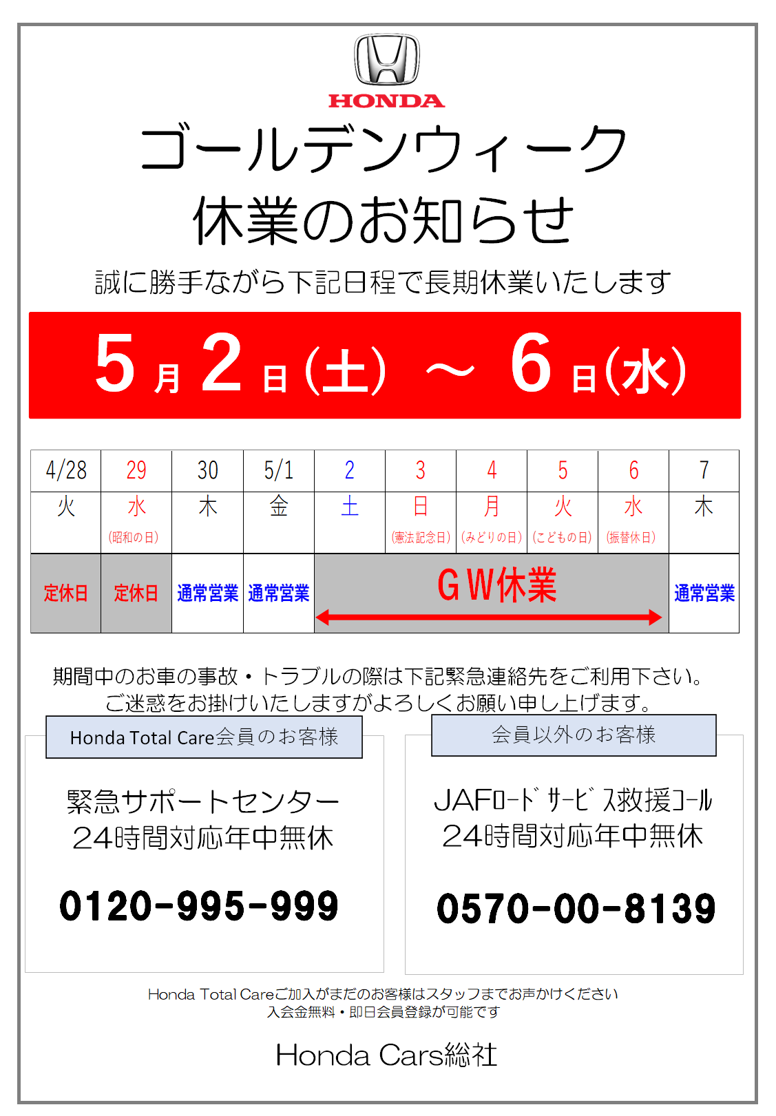 ホンダカーズ総社も下記の通り