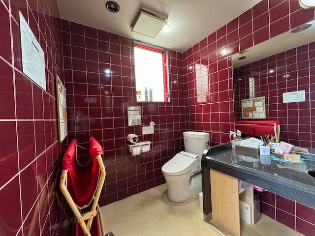 女性お手洗い内に簡易のおむつ替えシートとおむつ替えステップがございます。