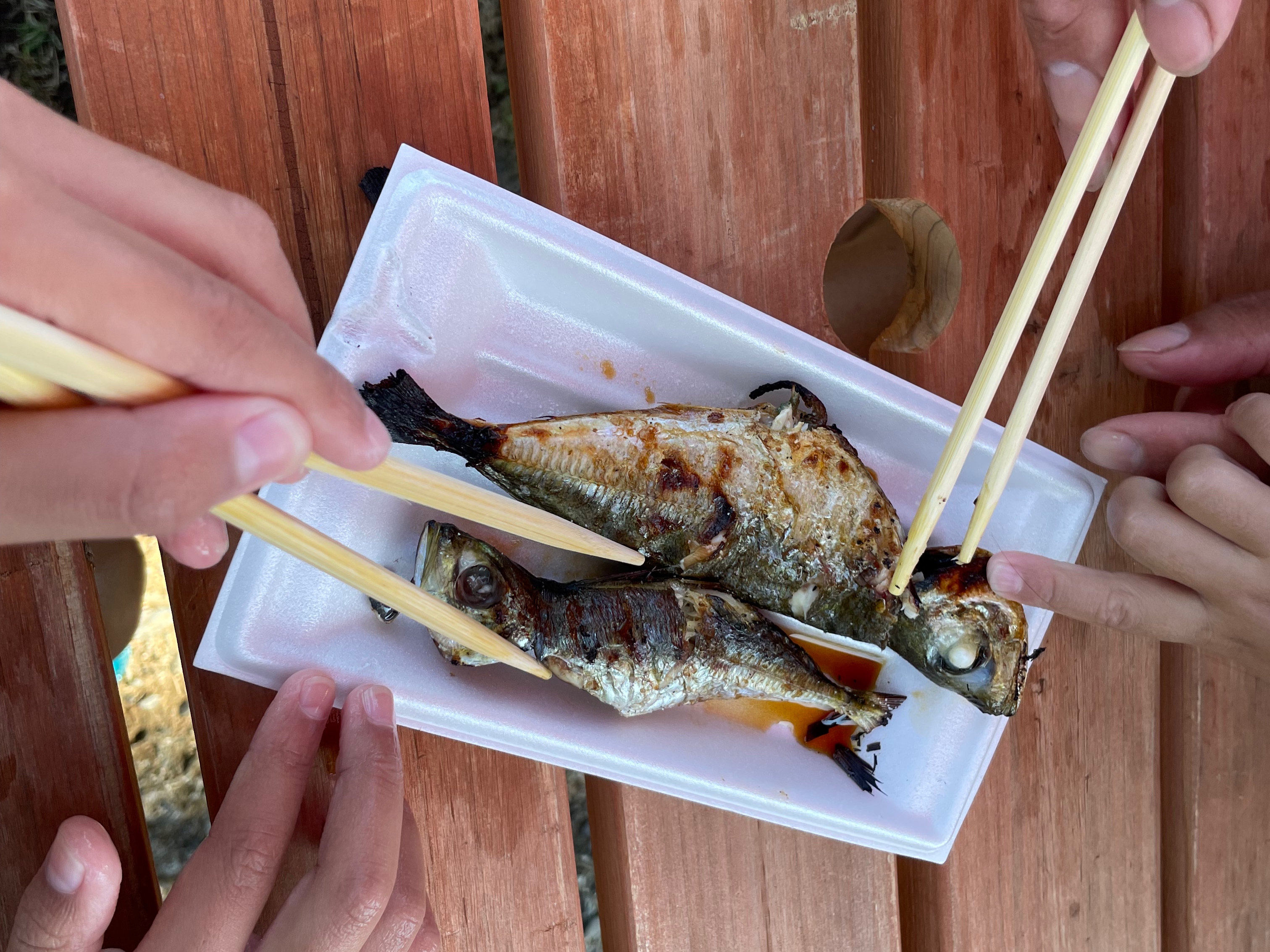 捕まえるとその場で焼いて食べさせてくれます☆