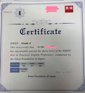 先ずは三男さんが1月末に挑戦していた英検4級の合格発表がありまして