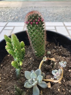 新町店の入り口にサボテンさんと多肉植物が植えてあるのですが